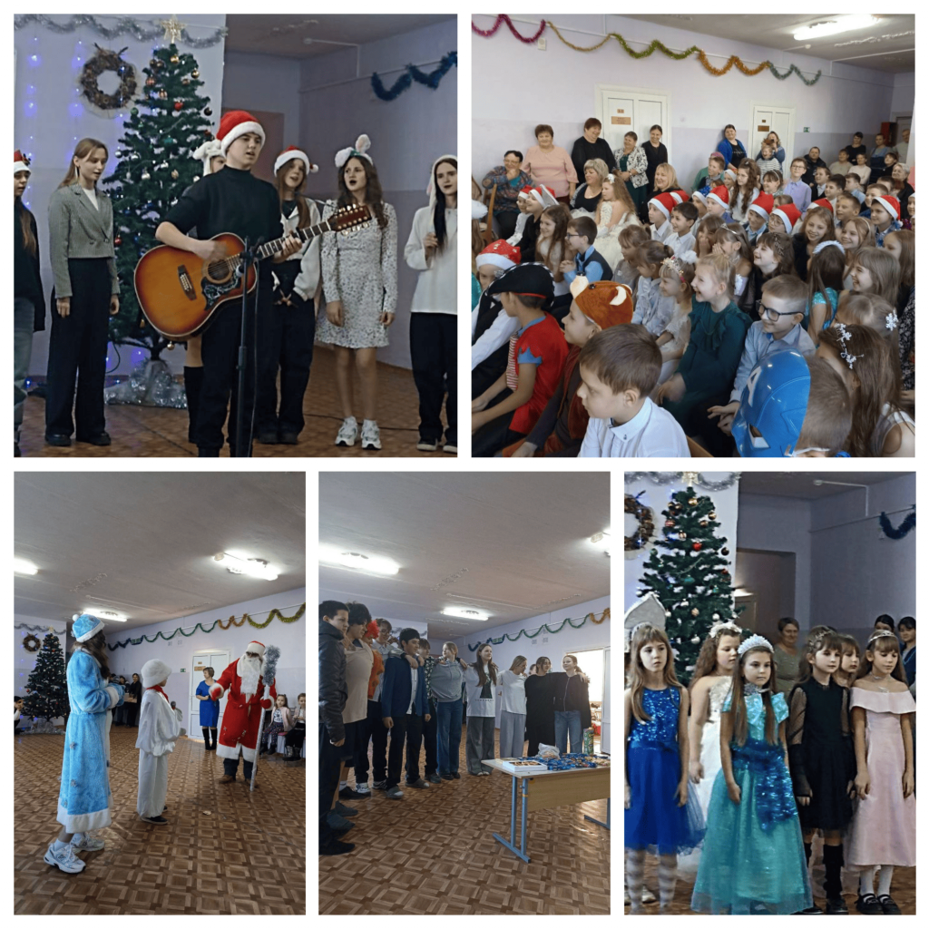 Школа превратилась в сказочный мир. Зал сиял огнями, а в нём оживали снежинки, Дед Мороз и Снегурочка. Ребята смеялись, танцевали, пели и с восторгом участвовали в конкурсах. Атмосфера была наполнена ожиданием чуда и радостью встречи с праздником.