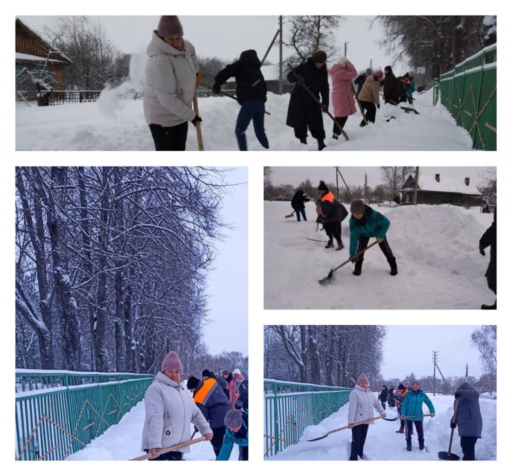 Директор Белькович И.А. с коллективом школы приняли участие в субботнике по расчистке снега на территории аг.Пиревичи. Были очищены пешеходные дорожки.