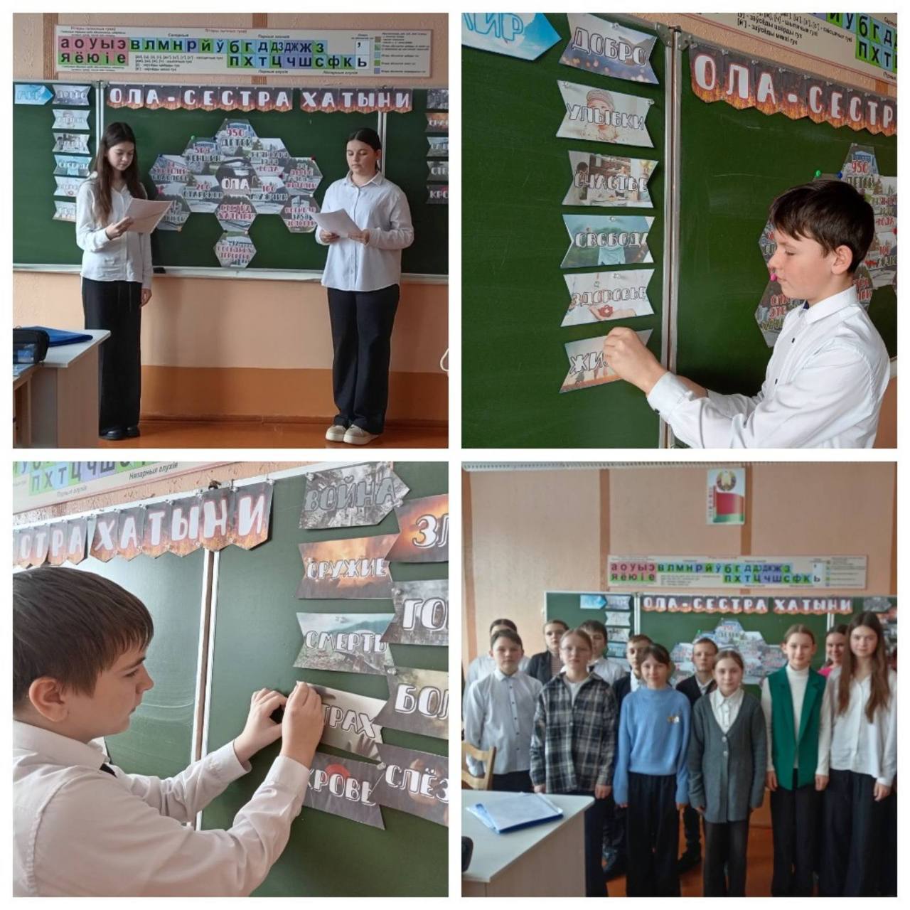 В 7 классе прошёл единый урок “Ола – сестра Хатыни” . Семиклассники вспомнили трагические события, произошедшие в деревне Ола 14 января 1944 года. В тот январский день в небольшой деревне, состоявшей из 34 домов, находилось более 1700 человек — местные жители и беженцы из окрестных деревень. Надежды на спасение не оправдались. Деревню окружил карательный отряд. Мирных людей, среди которых было 950 детей, загоняли в дома и поджигали заживо. Тех, кто пытался вырваться из огня, расстреливали. Всего погибло 1758 невинных человек. История Олы — это зеркало, в котором отразилась судьба сотен белорусских деревень, сожжённых вместе с людьми.