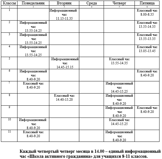 РАСПИСАНИЕинформационных и классных часов на 2 полугодие 2025/2026 учебного года