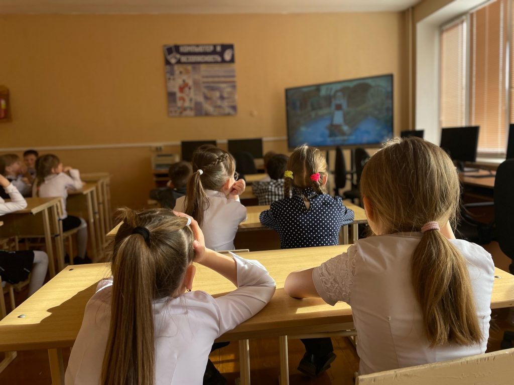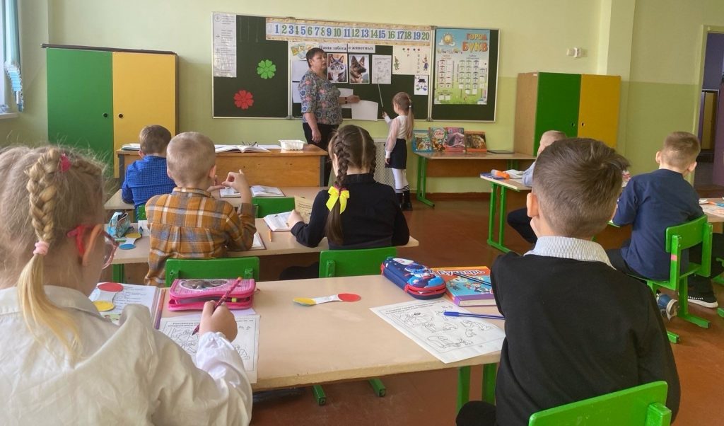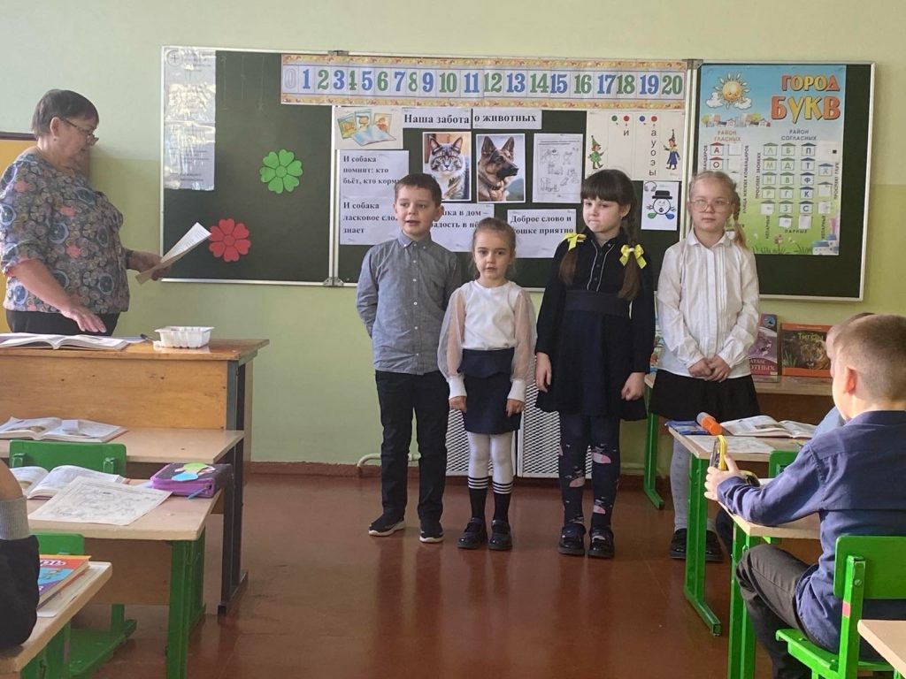 В 1 классе прошел открытый урок по предмету обучение грамоте (обучение чтению). Тема урока: Чтение слов с буквой Ф,ф. Внеклассное чтение по теме “Наша забота о животных”. На уроке учащиеся путешествовали по городу букв, познакомились с выставкой книг о животных, выполняли задания (работали в парах), читали рассказы о животных, пословицы