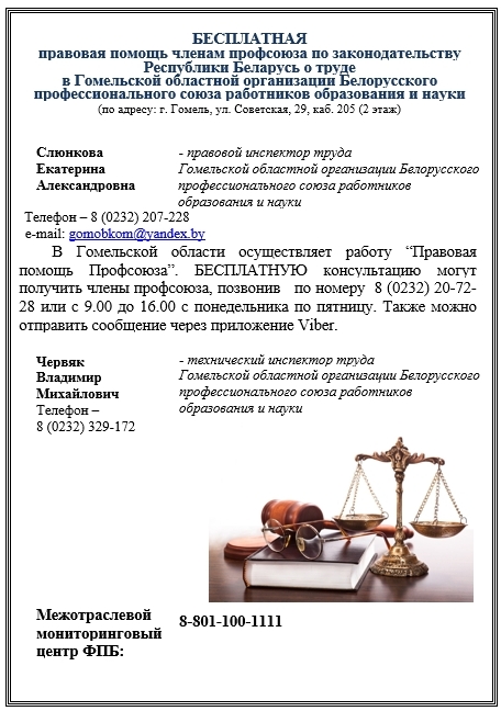 · консультации юристов. Защиту в суде. Консультации специалистов по охране труда и правовую помощь при несчастных случаях.