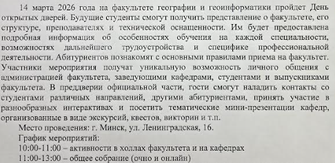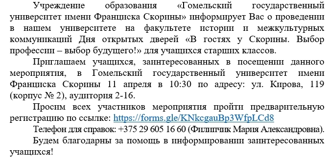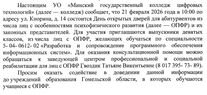 УО «МИНСКИЙ ГОСУДАРСТВЕННЫЙ