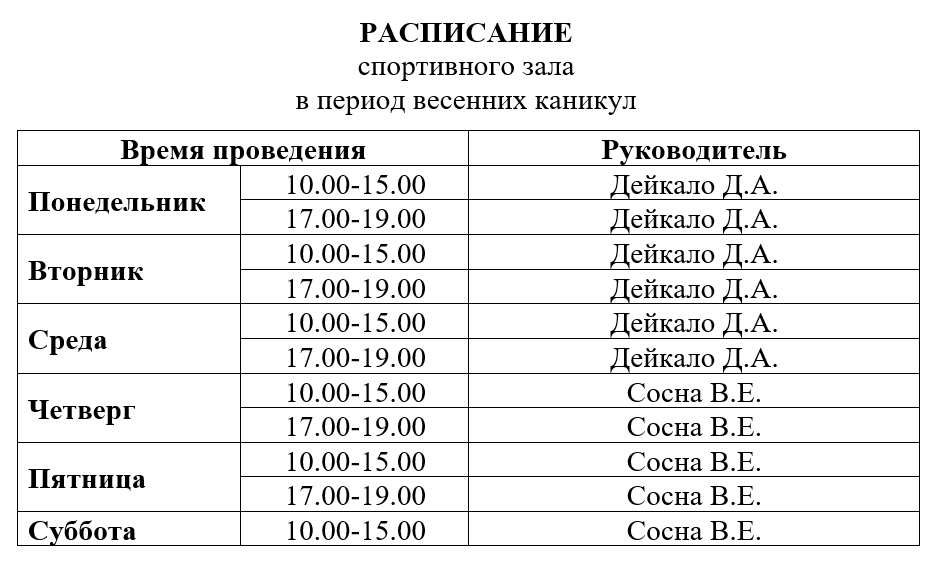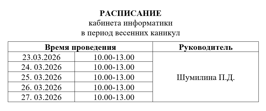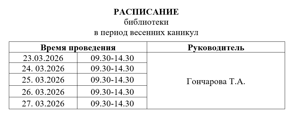 Графики работы в период весенних каникул