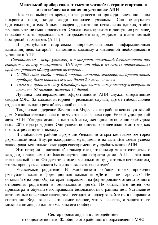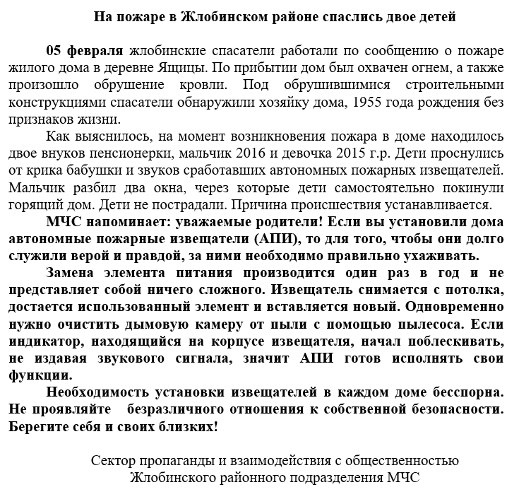 ❗️На пожаре в Климовичах двое детей были спасены благодаря АПИ.