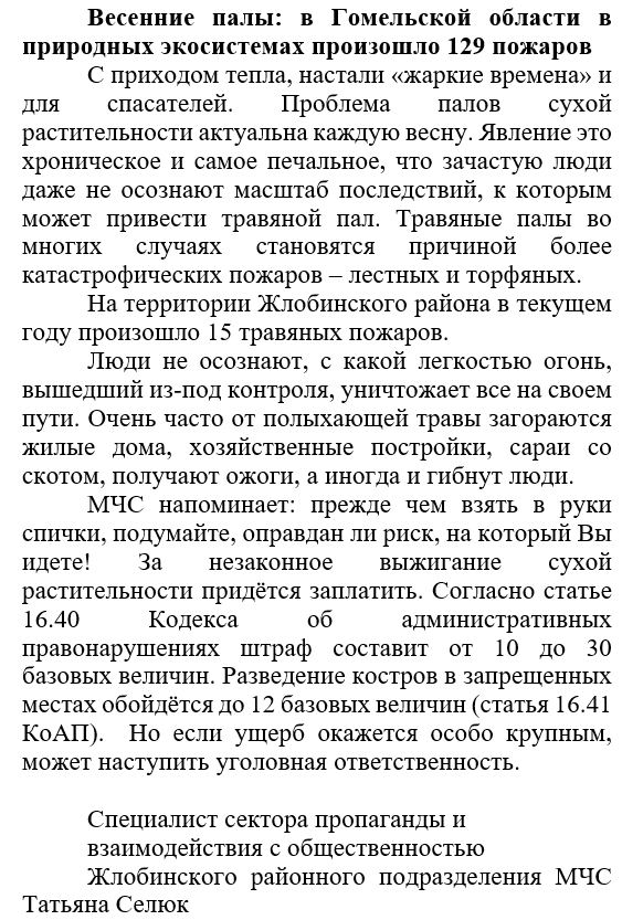 Знайте, выжигать сухую растительность строго запрещено! Нарушителям грозит штраф от 10 до 30 базовых величин.