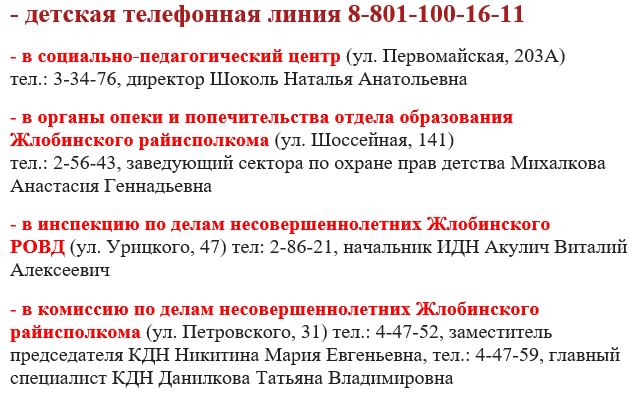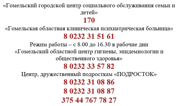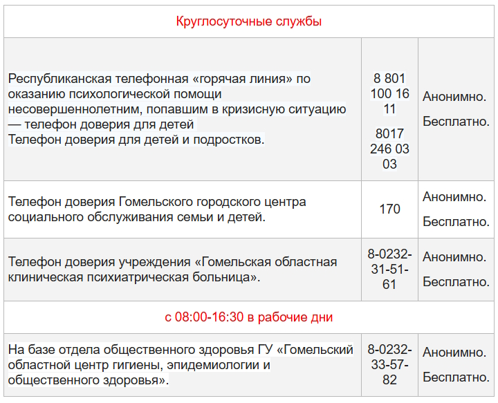 – Информация о телефонах доверия для оказания экстренной психологической помощи: