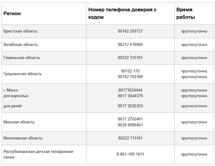 Телефоны доверия